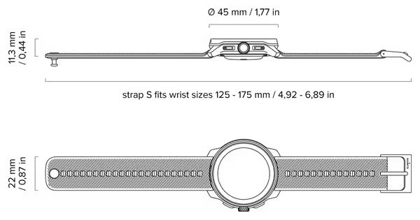 - Tailles de poignet : 125-175 mm (bracelets accessoires – 215 mm).