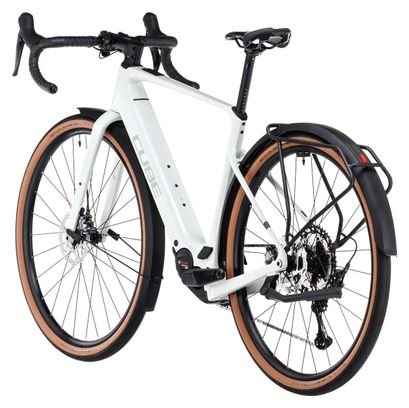 La technologie hybride légère Bosch, un cadre en carbone élégant et la commodité du porte-bagages et des garde-boues se combinent dans le Cube Nuroad Hybrid C:62 Race FE 400X. Sa fourche en carbone est également compatible avec un porte-bagages, et il dispose de bien plus de place que nécessaire pour ses pneus Schwalbe de 45 mm (vous pouvez l’équiper de pneus allant jusqu’à 50 mm) même en présence de garde-boues. Son moteur Bosch SX (qui permet de réduire d’environ 800 g par rapport au CX) est associé à une batterie de 400 Wh, tandis que son cadre est compatible avec le système PowerMore (vendu séparément) pour un surplus de 250 Wh d’autonomie.