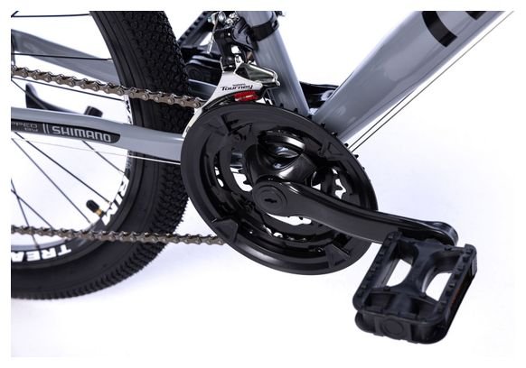 TRANSMISSION SHIMANO : Tous nos produits sont équipés par SHIMANO, dans ce cas un dérailleur arrière SHIMANO RD-TY300, 21 vitesses, dérailleur avant SHIMANO FD-TY300, manettes SHIMANO ST-EF41.