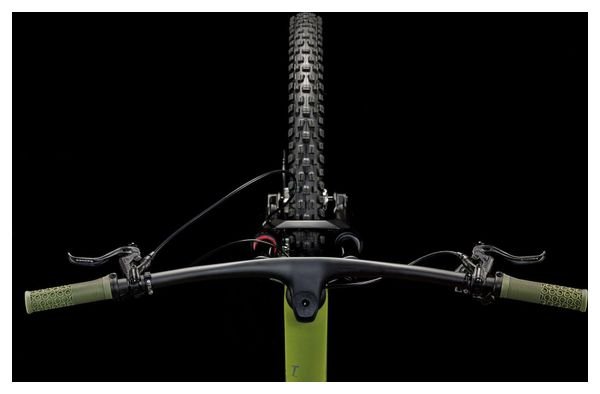 “VTT Tout-Suspendu Cube Stereo ONE55 C:62 TM 29” dans son coloris olive’n’chrome : un vélo carbone ultra-performant conçu pour l’enduro moderne, avec une géométrie agressive et une précision redoutable sur les trails les plus exigeants.”