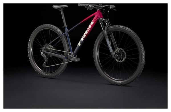 VTT semi-rigide Trek Marlin 6 Shimano Cues 10V 27.5” Rouge Bleu Génération 3, parfait pour explorer les sentiers avec fluidité et contrôle grâce à sa transmission moderne et son design dynamique.