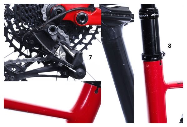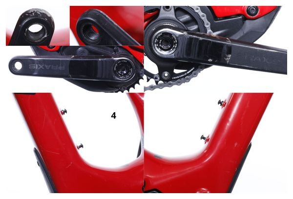 Acheté en 2021, ce vélo appartenait à Gilles, il a roulé 6560 kilomètres. A la suite de son contrôle qualité, de légers dommages ont pu être constatés (voir photos avec flèches).