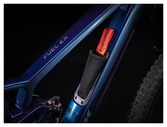 Le Trek Fuel EX 9.8 dispose d’un cadre en carbone OCLV Mountain, avec rangement interne, géométrie ajustable (Mino Link), levier réglable, et compatibilité ISCG 05. Il intègre une protection de tube diagonal, une douille de direction ajustable et un débattement arrière de 140 mm.