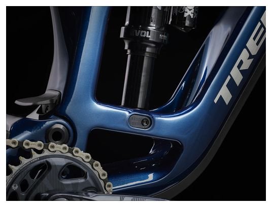 Dominez les sentiers avec le VTT tout-suspendu Trek Fuel EX 9.8 2023, équipé de la transmission électronique Sram GX Eagle AXS 12 vitesses, de roues 29” et d’un cadre carbone au coloris Bleu Mulsanne — un concentré de technologie et de performance en trail.