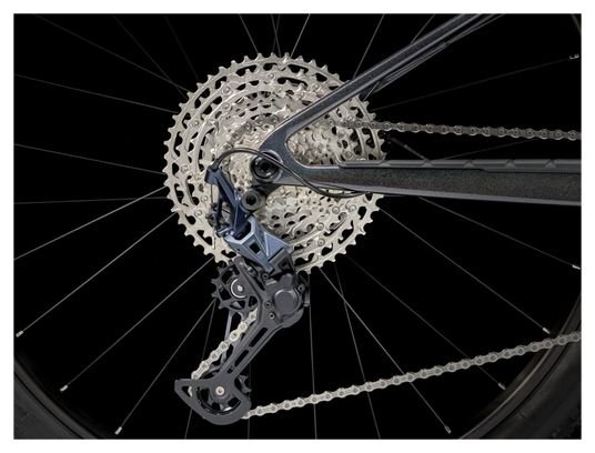 La transmission 12 vitesses associe une manette Shimano Deore M6100, un dérailleur arrière Shimano SLX M7100 à chape longue, et une cassette 10-51 dents Shimano Deore M6100, garantissant des changements précis et une large plage de vitesses. La chaîne est également Shimano Deore M6100.
